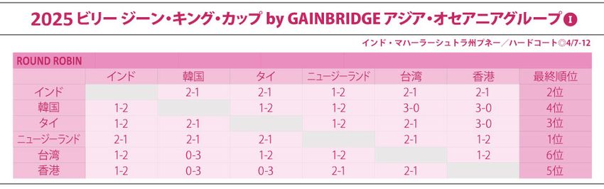 2025ビリージーンキングカップ by GAINBRIDGE アジア・オセアニア地区グループⅠ|トーナメント表