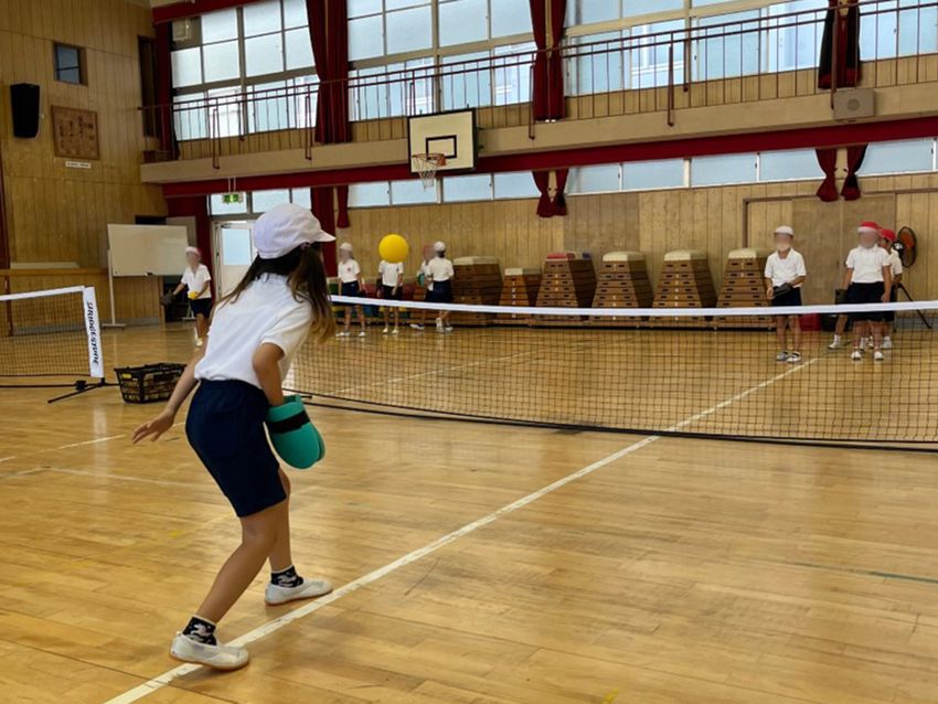 誰でも簡単にテニス特有の面白さを体感できるテニス型ゲーム「テニピン」は、全員が楽しく参加でき、誰もが活躍できることにより児童の自己肯定感向上を目指せるという特徴がある。また、状況を判断したり、戦略を練ったりすることができ、「思考力・判断力・表現力」の育成にも適したスポーツだ。