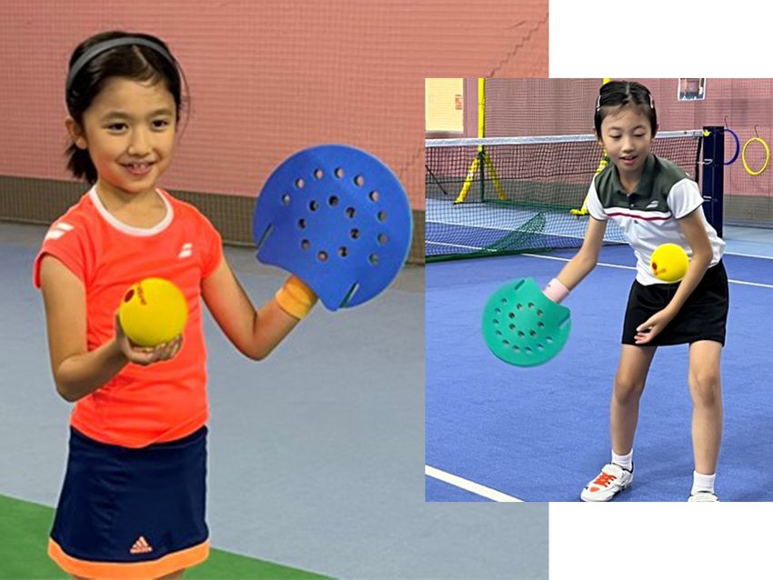 手の平を包み込むようなタイプのラケットを手にはめ、ネットを挟んでスポンジボールを打ち合う簡易型のテニス型ゲーム