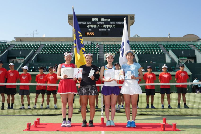 続いて行われたダブルス決勝では、第1シードの小堀桃子(橋本総業ホールディングス)/清水綾乃(Team LB)が第4シードの倉持美穂(SBC メディカルグループ)/大前綾希子(橋本総業)との日本人ペア対決を4-6 6-2 [10-8]で制して今季4勝目を挙げた。試合時間は1時間24分。