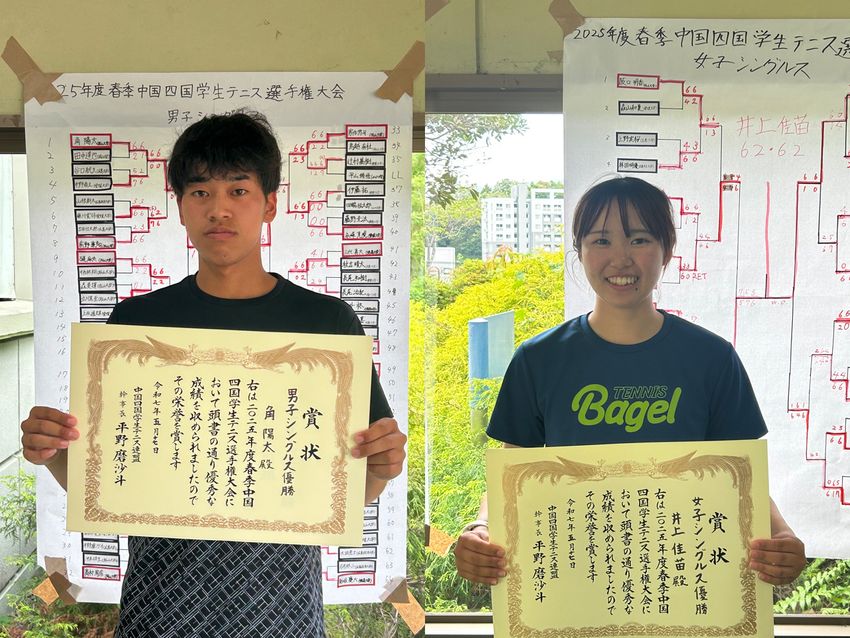 シングルスは角陽太(岡山大学3年)と井上佳苗(島根大学2年)が優勝、角は3連覇を達成 [R7春季中国四国学生]
