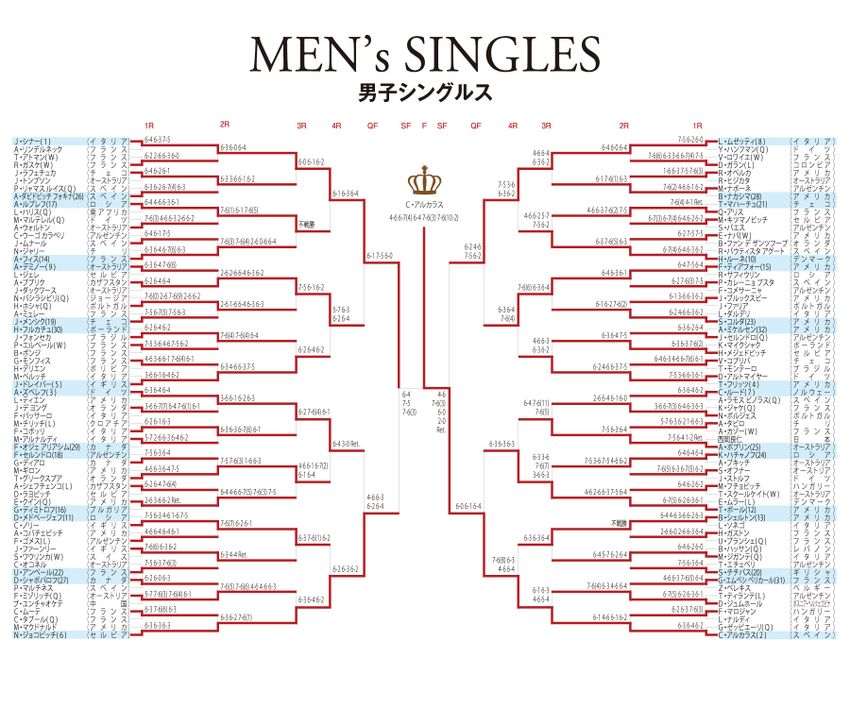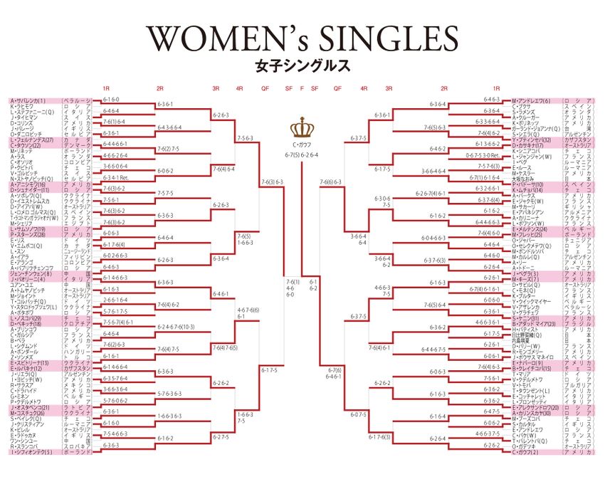 ※( )数字はシード順位、Wはワイルドカード(主催者推薦枠)、Qは予選勝者、Lはラッキールーザー(欠場者が出たため本戦出場権を得た予選敗退選手)、Ret.は途中棄権