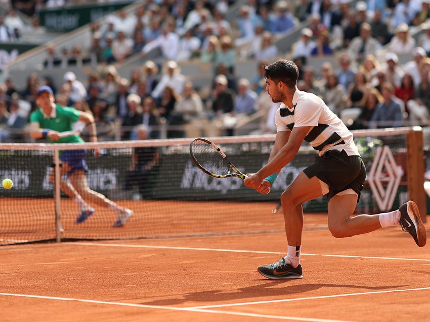 シーズン2つ目のグランドスラム大会「フレンチ・オープン」(フランス・パリ/本戦5月25日~6月8日/クレーコート)の男子シングルス決勝で第1シードのヤニク・シナー(イタリア)と第2シードのカルロス・アルカラス(スペイン)が対戦し、2セットを連取されたアルカラスが第3セットを奪って4-6 6-7(4) 6-4で第4セットに望みを繋いだ。