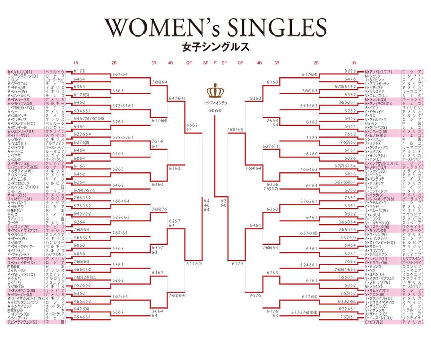 ※( )数字はシード順位、Wはワイルドカード(主催者推薦枠)、Qは予選勝者、Lはラッキールーザー(欠場者が出たため本戦出場権を得た予選敗退選手)、Ret.は途中棄権