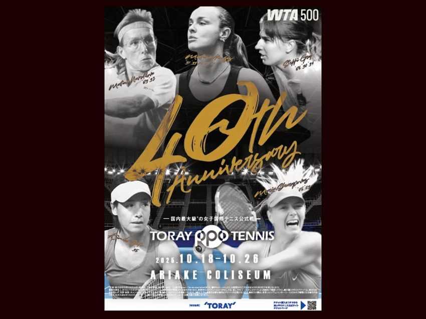 国内最高峰の国際女子テニス大会として1984年に始まって以来、日本のテニスファンを魅了してきた「東レ パン パシフィック オープンテニストーナメント」(以下、東レPPO/カテゴリーはWTA500)が今年、大きな節目となる40回記念大会を迎える。会期は10月18日(土)から26 日(日)まで、会場は有明コロシアムおよび有明テニスの森公園で開催される。