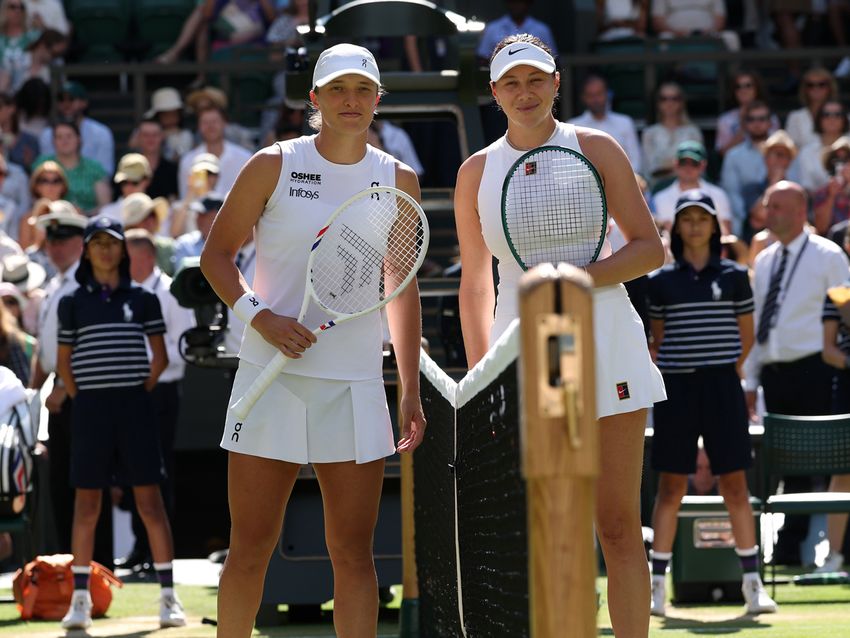 シーズン3つ目のグランドスラム大会「ウインブルドン」(イギリス・ロンドン/本戦6月30日~7月13日/グラスコート)の女子シングルス決勝でともに大会初優勝を目指す第8シードのイガ・シフィオンテク(ポーランド)と第13シードのアマンダ・アニシモワ(アメリカ)が対戦し、第1セットはシフィオンテクが6-0で先取した。