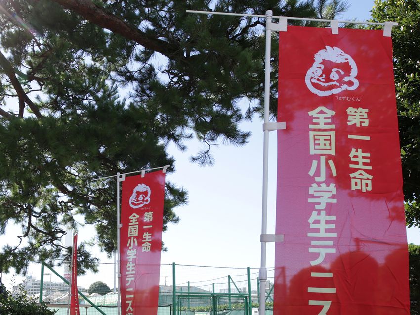 全国小学生テニス選手権大会は、男女シングルス各64ドローで争われる。