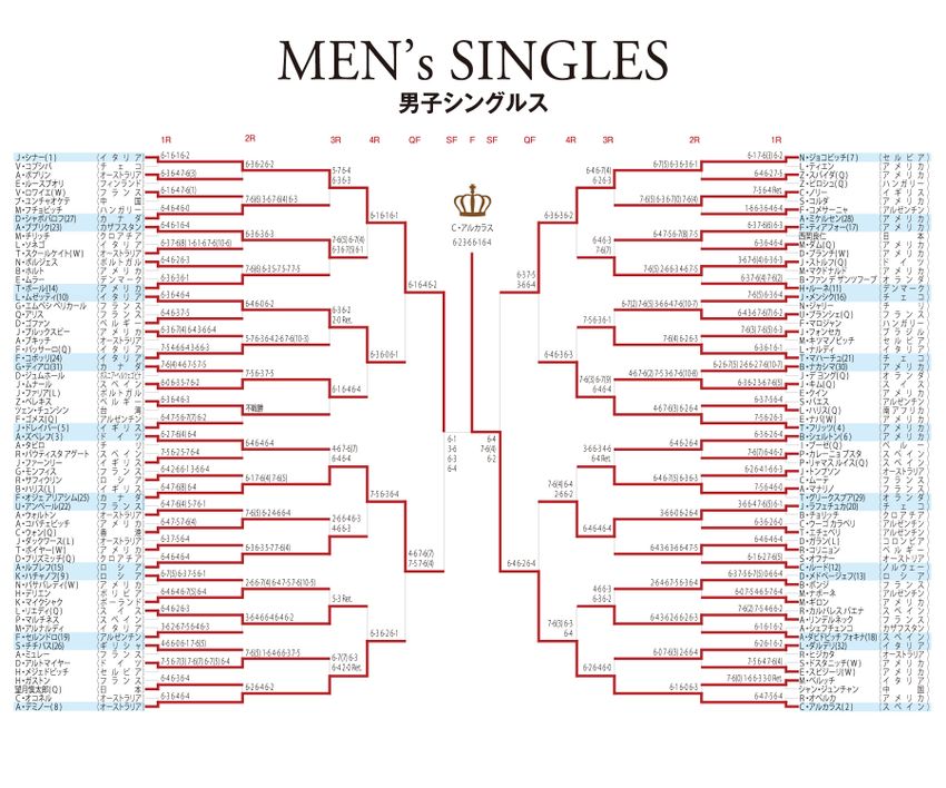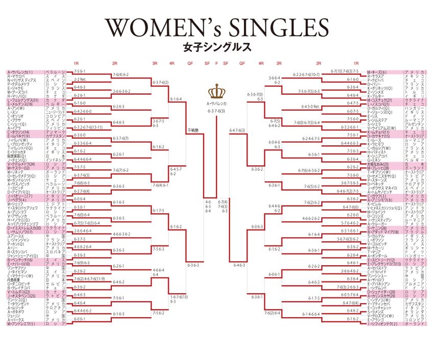 ※( )数字はシード順位、Wはワイルドカード(主催者推薦枠)、Qは予選勝者、Lはラッキールーザー(欠場者が出たため本戦出場権を得た予選敗退選手)、Ret.は途中棄権