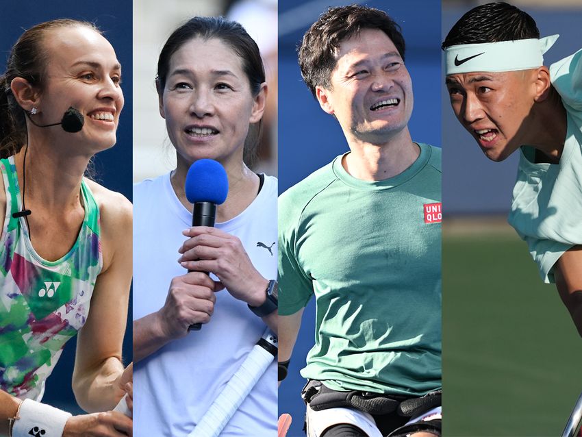 写真左からマルチナ・ヒンギス、伊達公子、国枝慎吾、小田凱人