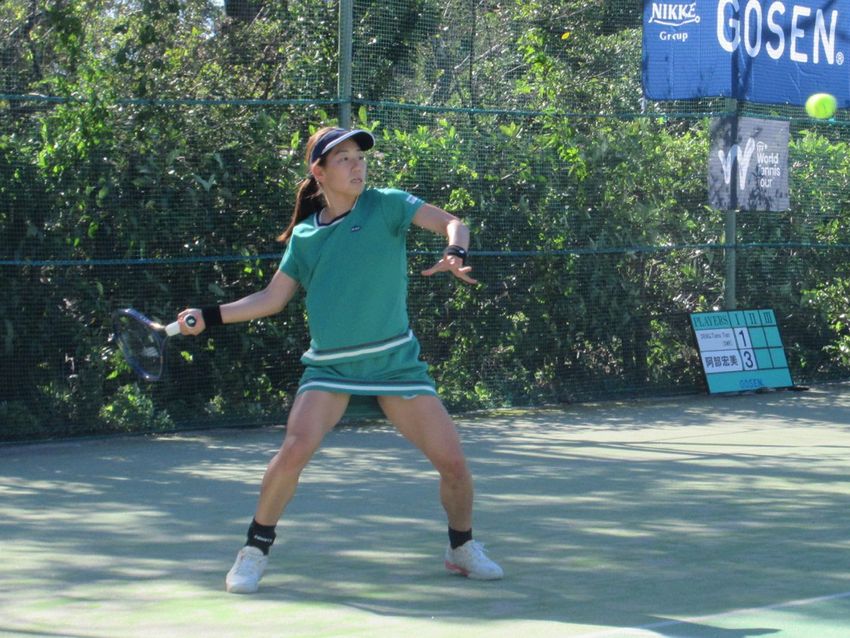 写真は女子シングルス2回戦に進出した阿部宏美(アオヤマスポーツ)(写真提供◎牧之原国際女子オープンテニス実行委員会)