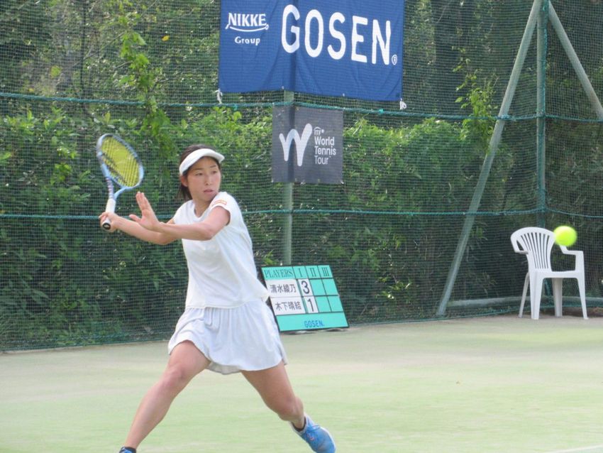女子シングルス準々決勝に進出したディフェンディング・チャンピオンで第7シードの清水綾乃(Team LB)(写真提供◎牧之原国際女子オープンテニス実行委員会)