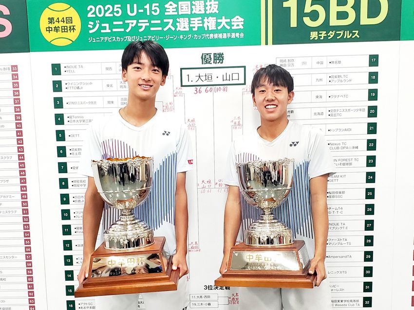 ダブルスでは男子が第1シードの大垣心太郎/山口慶二(関西:INOUE TA/YELL)、女子は第1シードの柴山那奈/藤山羽優(中国:NBテニスガーデン/やすいそ庭球部)がタイトルを獲得した。