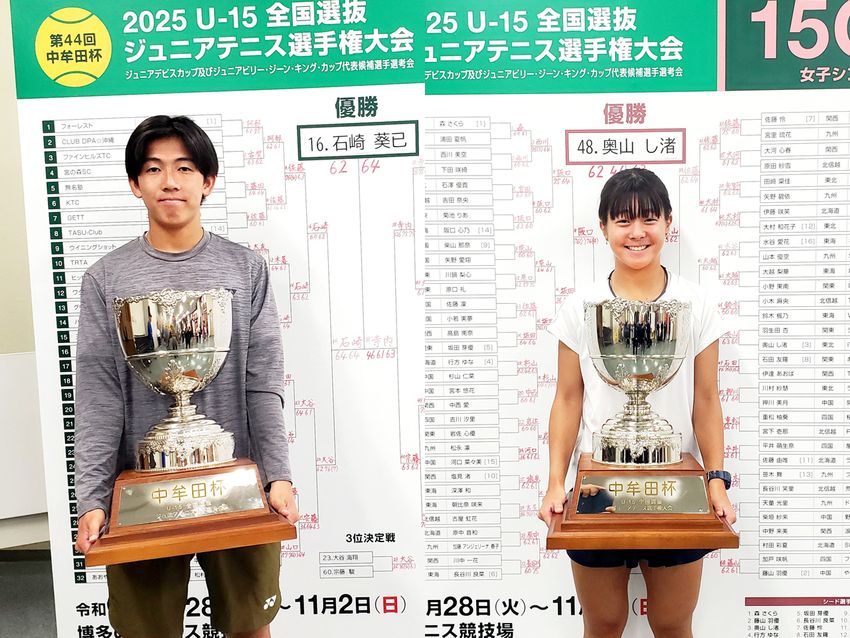シングルスは石崎葵已(関東/REC Waseda Club TA)と奥山し渚(東北/ITSベルズ)が優勝 [第44回中牟田杯U15]
