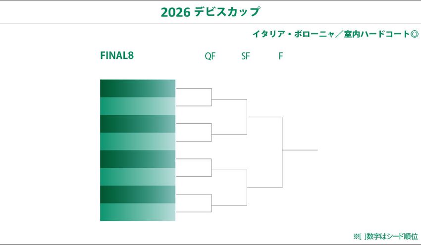 「2026デビスカップ」(予選1回戦:2月5~8日、予選2回戦:9月18~20日、ファイナル8:11/23からの週◎イタリア・エミリア ロマーニャ州ボローニャ/室内ハードコート)