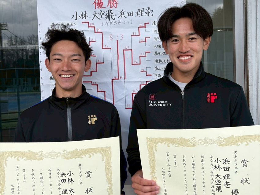 九州学生テニス連盟が主催する「令和7年度九州学生新進テニストーナメント」(福岡県春日市・オクゼン不動産テニスコート/本戦3月9~14日/砂入り人工芝コート)が開催され、各種目のチャンピオンが決定した。