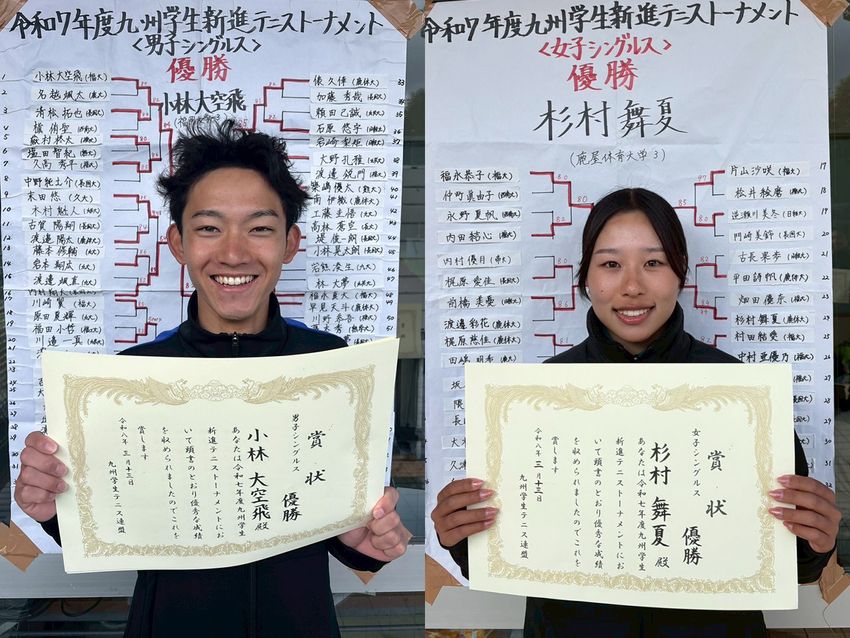 シングルスは小林大空飛(福岡大3年)と杉村舞夏(鹿屋体育大3年)が優勝、小林は単複2冠 [R7九州学生新進戦]