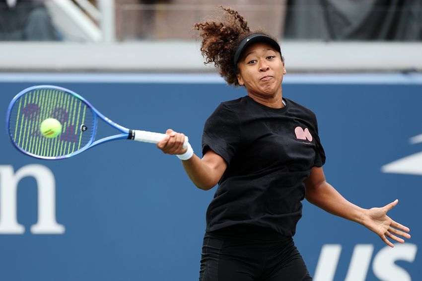 NEW YORK, NEW YORK - AUGUST 21: Naomi Osaka of Japan returns a ball during a practice session ahead of the 2025 US Open at USTA Billie Jean King National Tennis Center on August 21, 2025 in the Queens borough of New York City. (Photo by Sarah Stier/Getty Images)