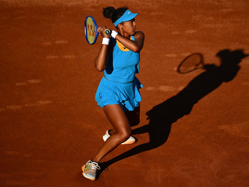 ROME, ITALY - MAY 10: Naomi Osaka of Japan plays a forehand against Marie Bouzkova of Czech Republic in the Women's Singles Third Round match during Day Six of the Internazionali BNL D'Italia 2025 at Foro Italico on May 10, 2025 in Rome, Italy. (Photo by Clive Mason/Getty Images)