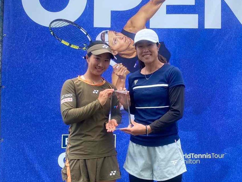 女子シングルスで優勝を飾った西村佳世(安藤証券/左)と森田あゆみコーチ(写真提供◎西村佳世:安藤証券所属)