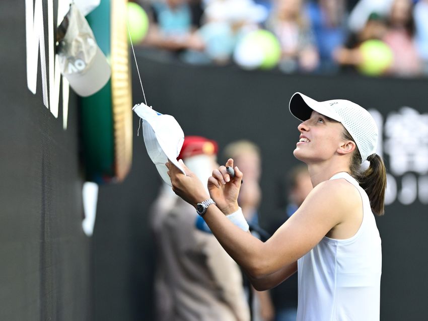 オーストラリアン・オープン4回戦勝利後にファンのサインに応じるイガ・シフィオンテク(ポーランド)(Getty Images)