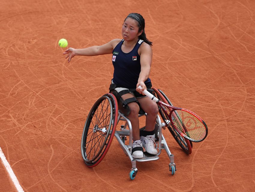 PARIS, FRANCE - JUNE 03: Yui Kamiji of Japan plays a forehand against Pauline Deroulede of France in the Women’s Wheelchair Singles First Round match on Day Ten of the 2025 French Open at Roland Garros on June 03, 2025 in Paris, France. (Photo by Adam Pretty/Getty Images)