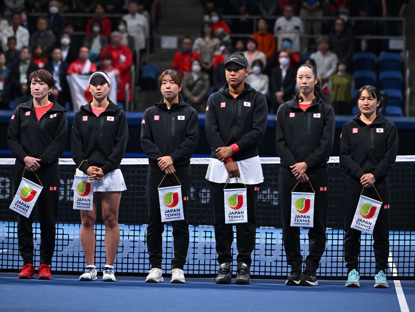 写真は2024年ビリージーンキングカップファイナルズ予選カザフスタン戦での日本代表チーム(Getty Images)