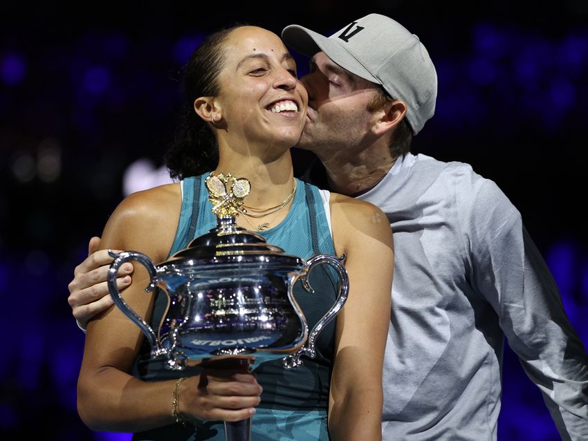グランドスラム初優勝を飾ったマディソン・キーズ(アメリカ/左)とコーチで夫でもあるビヨン・フラタンジェロ(アメリカ)(Getty Images)
