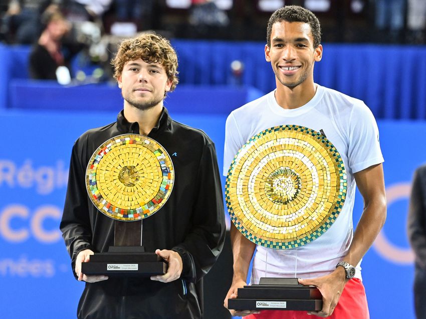 「オクシタニー・オープン」(フランス・モンペリエ)で今季2勝目を挙げたフェリックス・オジェ アリアシム(カナダ/右)と準優勝のアレクサンダー・コバチェビッチ(アメリカ)(Getty Images)