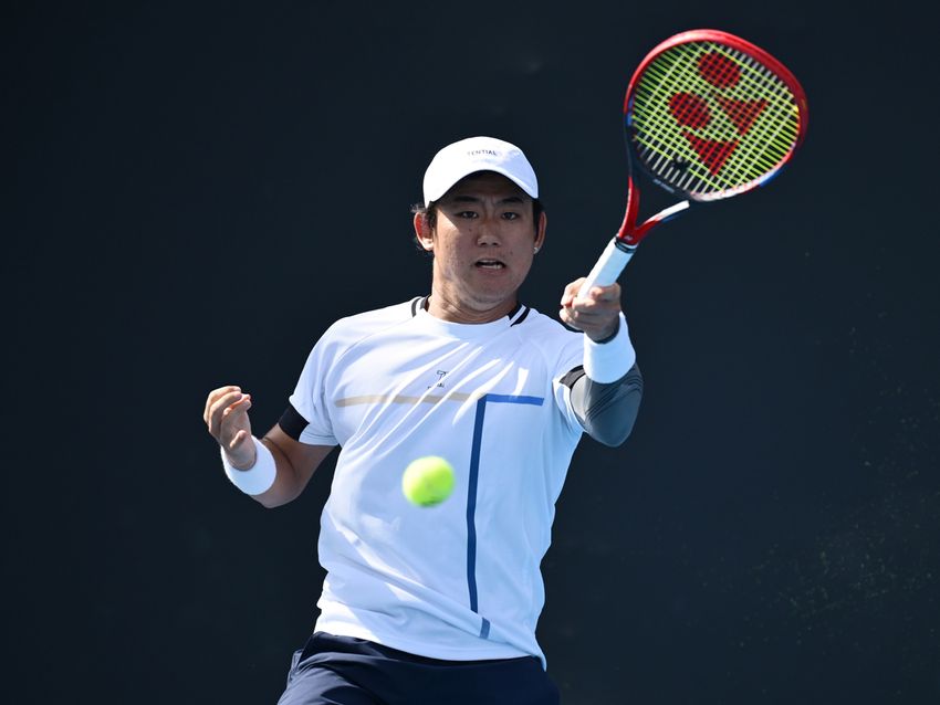 写真はオーストラリアン・オープンでの西岡良仁(ミキハウス)(Getty Images)