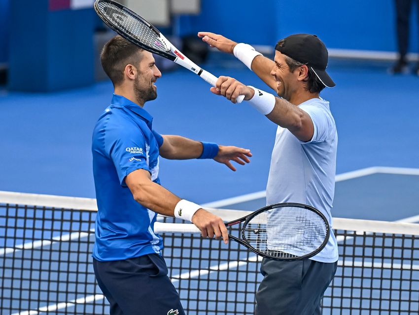 男子ダブルスで初戦を突破したノバク・ジョコビッチ(左)/フェルナンド・ベルダスコ(セルビア/スペイン)(Getty Images)
