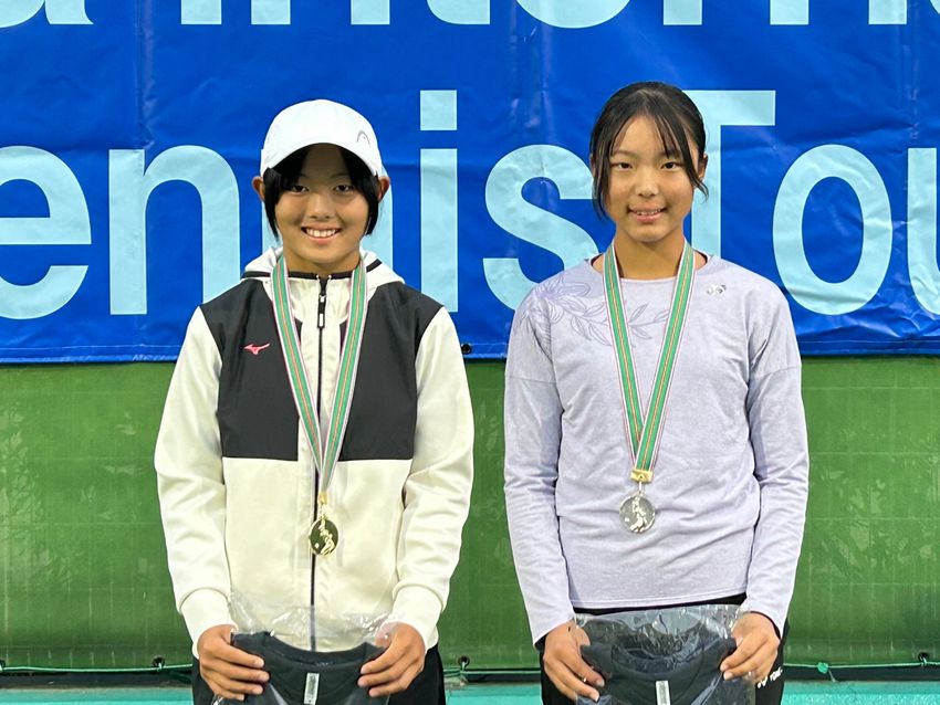女子シングルスで優勝を飾った塩見渚(T.K.C Jrアカデミー/左)と準優勝の柴山那奈(NBテニスガーデン)(写真提供◎大​阪​府​テ​ニ​ス​協​会)