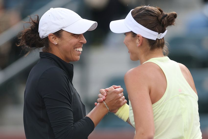 試合後に握手を交わすマディソン・キーズ(アメリカ/左)とベリンダ・ベンチッチ(スイス)(Getty Images)