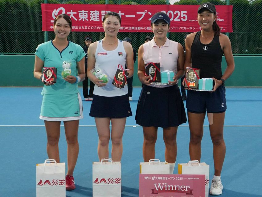 (右から)女子ダブルス優勝のキャロル ヤング スー・リー(アメリカ)、ウィ・フィウォン(韓国)、準優勝の木下晴結(ミキハウス)、小林ほの香(橋本総業)(@Square Plus)
