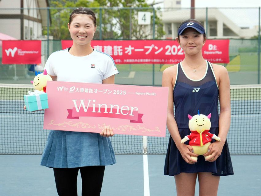 女子シングルスで優勝を飾った木下晴結(ミキハウス/左)と準優勝の虫賀心央(フリー)(@Square Plus)