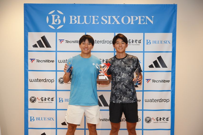 男子ダブルスで優勝を飾った楠原悠介(伊予銀行/右)と中川舜祐(伊予銀行)(©︎BLUE SIX OPEN)