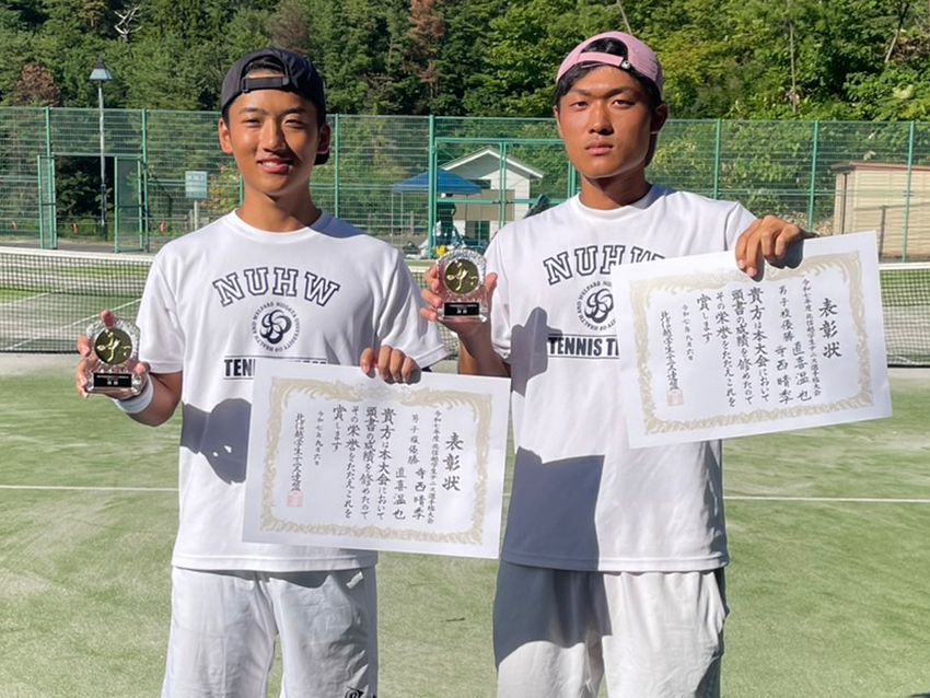 男子ダブルス優勝の直喜温也(右)/寺西晴季(新潟医療福祉大学3年/2年)(写真提供◎北信越学生テニス連盟)