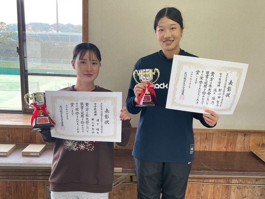 女子ダブルス優勝の新小田智子(右)/道下瑞乃(金沢医科大学2年/金沢学院大学4年)(写真提供◎北信越学生テニス連盟)