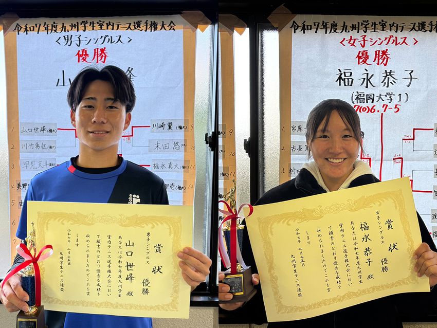 「令和7年度九州学生室内テニス選手権大会」(福岡県福岡市・博多の森テニス競技場室内コート/本戦2月11~15日/室内砂入り人工芝コート)