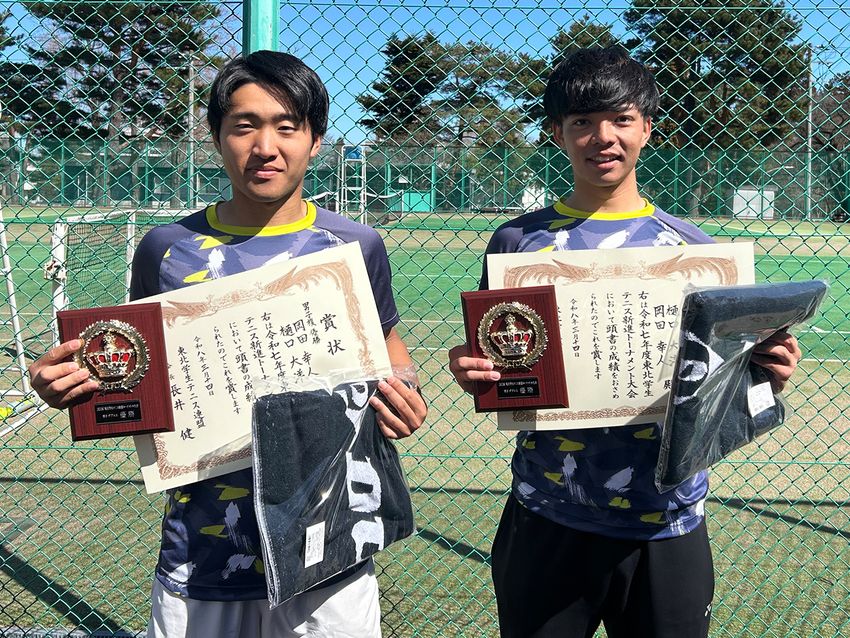 男子ダブルス優勝の樋口大洋(右)/岡田幸人(福島県立医科大学5年/3年)(写真提供◎東北学生テニス連盟)