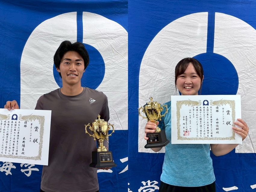 シングルスで優勝を飾った木野陽生(愛知学院大学4年/左)と永田侑那(中京大学4年)(写真提供◎東海学生テニス連盟)