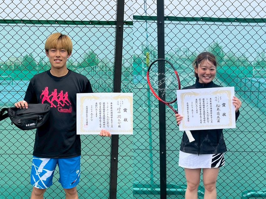 シングルスで2連覇を達成した増田潤之介(札幌国際大学3年/左)と松本萌恵(北海道大学3年)(写真提供◎北海道学生テニス連盟)