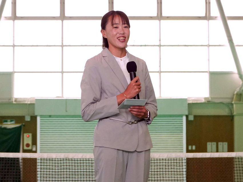3月に現役生活を終えた林恵里奈が地元ファンの前で引退を報告