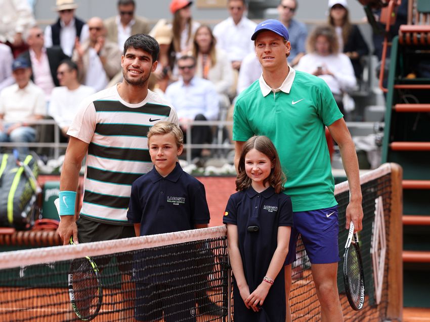 試合前のフォトセッションでのヤニク・シナー(イタリア/右側)とカルロス・アルカラス(スペイン/左側)(Getty Images)