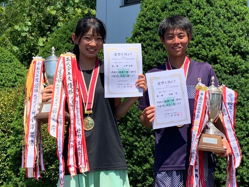 18歳以下シングルスで優勝を飾った佐藤傑(海星学院高/右)と小澤菜陽(札幌光星高)(写真提供◎北海道テニス協会)