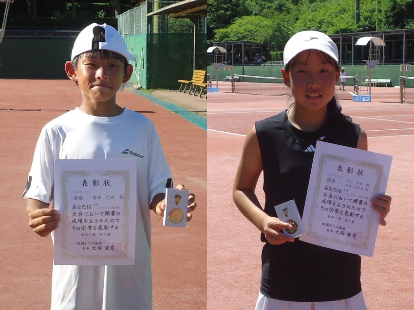 12歳以下シングルスは有澤志道(高知/土佐塾中学校テニス部)と平井萌生奈(香川/屋島TC)が優勝、吉川は単複2冠 [2025四国ジュニア]