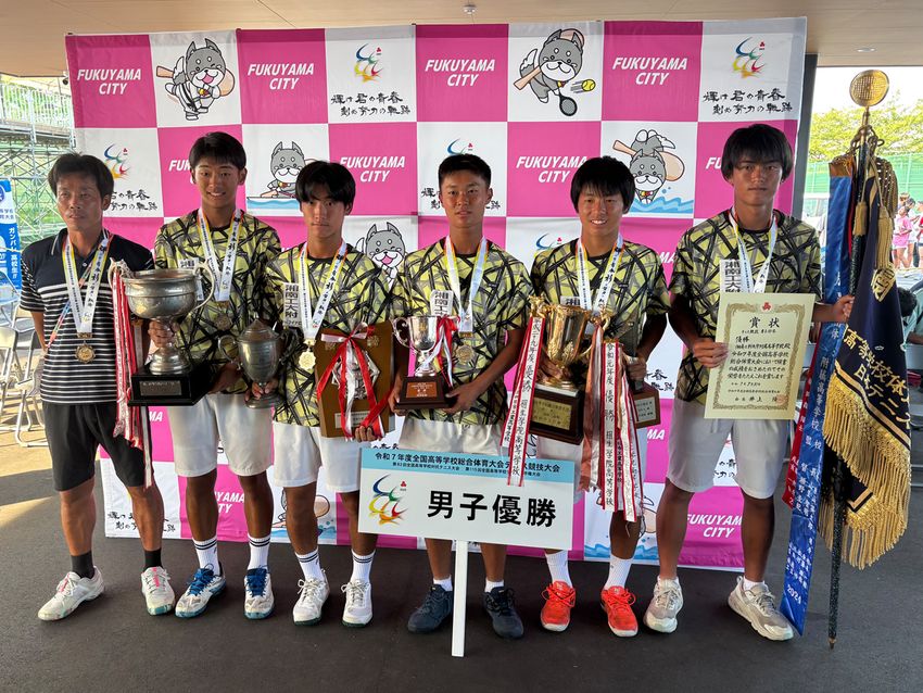 「令和7年度全国高等学校総合体育大会テニス競技第82回全国高等学校対抗テニス大会第115回全国高等学校テニス選手権」(男女団体戦:7月29~31日、男女個人戦:8月1~4日/広島県福山市・竹ヶ端運動公園庭球場、広島県尾道市・こざかなくんスポーツパークびんごテニスコート/砂入り人工芝コート)
