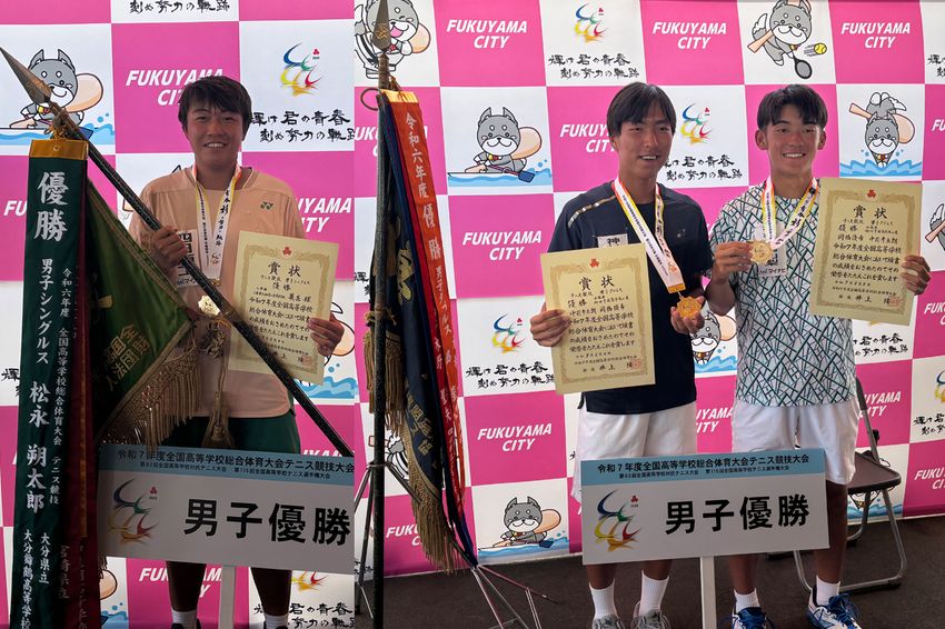 「令和7年度全国高等学校総合体育大会テニス競技第82回全国高等学校対抗テニス大会第115回全国高等学校テニス選手権」(男女団体戦:7月29~31日、男女個人戦:8月1~4日/広島県福山市・竹ヶ端運動公園庭球場、広島県尾道市・こざかなくんスポーツパークびんごテニスコート/砂入り人工芝コート)