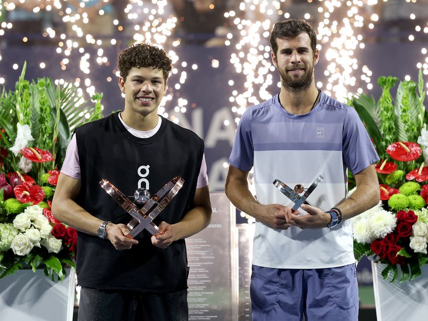 「ナショナルバンク・オープン」(カナダ・トロント)でキャリア最大のタイトルを獲得したベン・シェルトン(アメリカ/左)と準優勝のカレン・ハチャノフ(ロシア)(Getty Images)