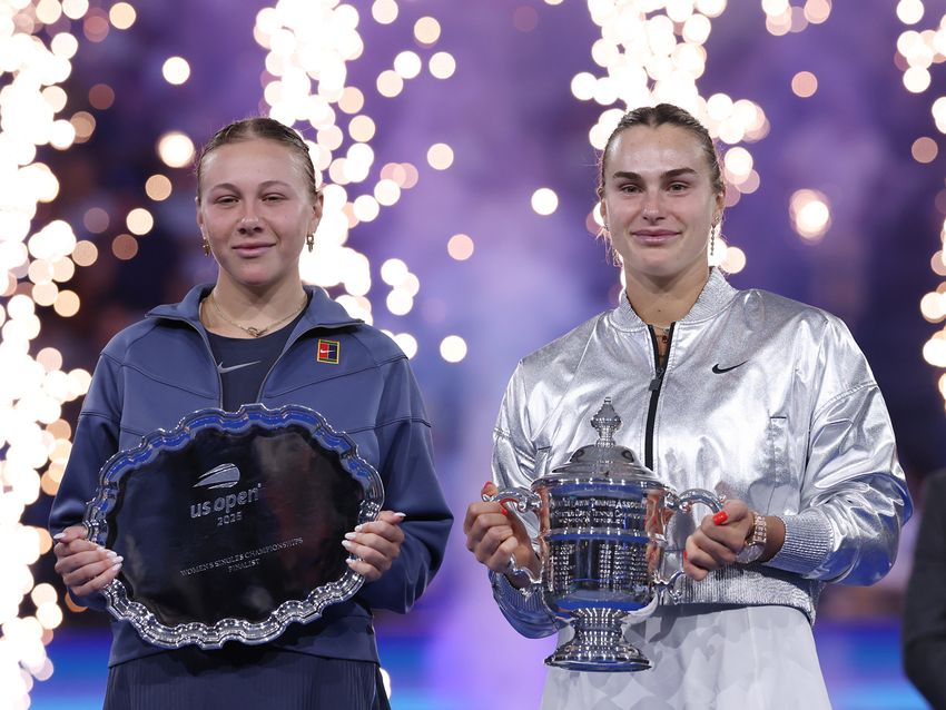 「USオープン」(アメリカ・ニューヨーク)で2連覇を達成したアーニャ・サバレンカ(ベラルーシ/右)と準優勝のアマンダ・アニシモワ(アメリカ)(Getty Images)