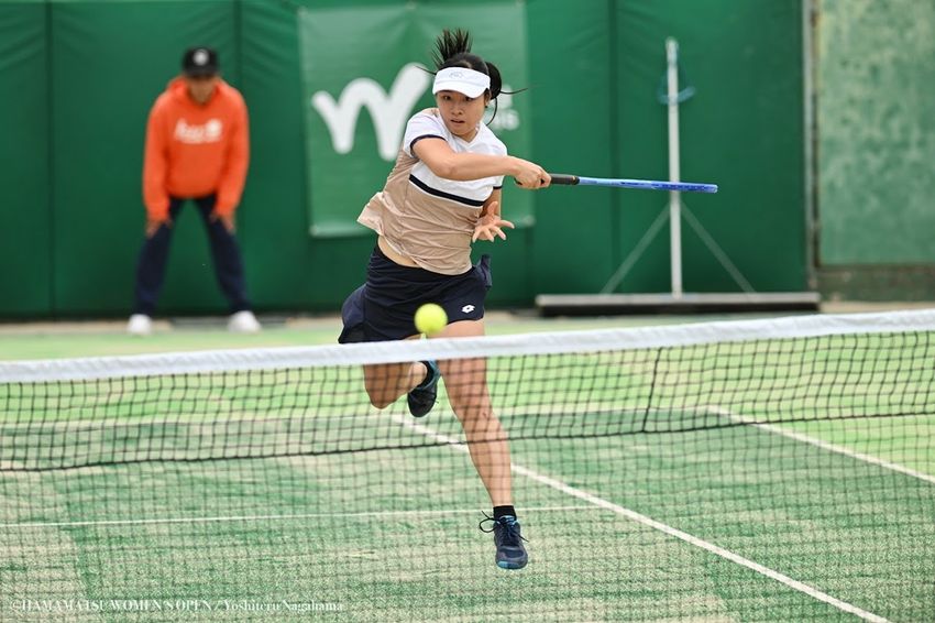 本戦がスタート、吉岡希紗がシードダウンを演じて女子シングルス初戦を突破 [W35浜松ウイメンズオープン]